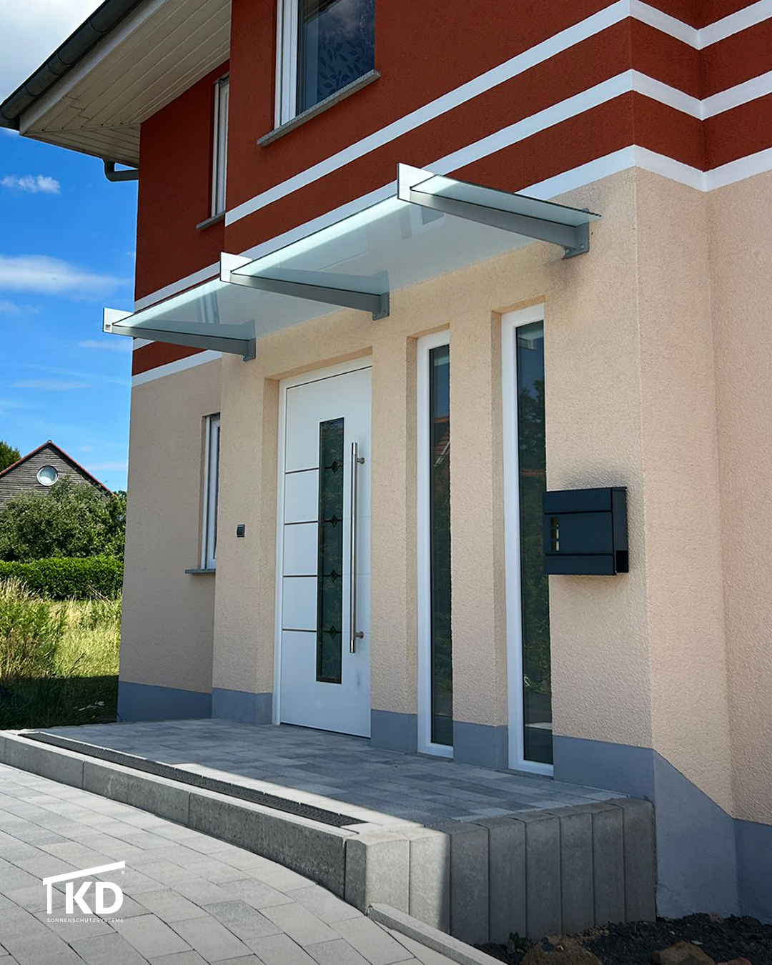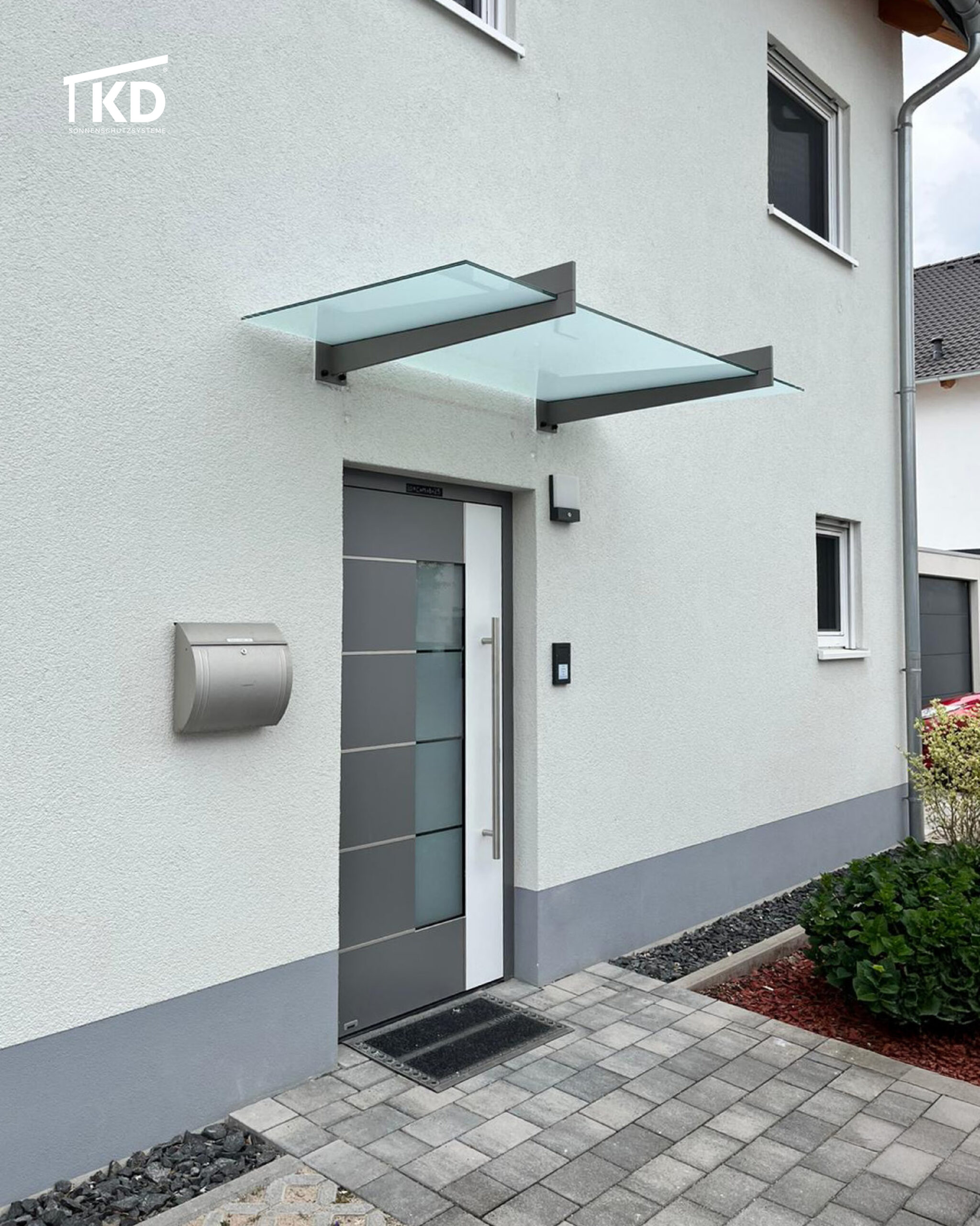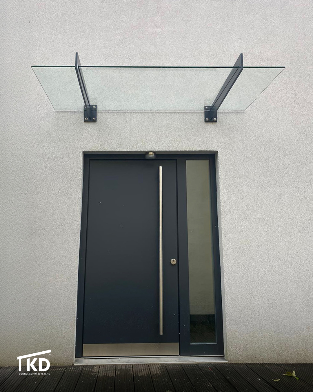 Das Erste, was Sie jeden Tag von Ihrem Heim sehen, muss einfach beeindrucken! Zeitlos elegant erscheint unsere SKY Plus Eingangsüberdachung. Die im Schwertdesign konzipierten Halterungen sind freitragend und können bis zu einer Breite von 4m eingesetzt werden. Die 12mm starke VSG Eindeckung erhalten Sie in klar oder matt.
