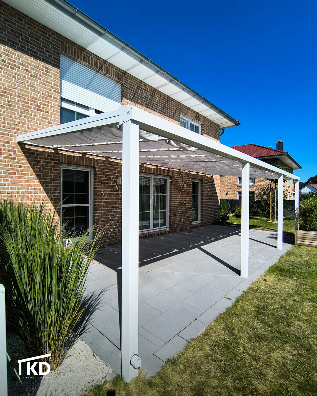 Einfach mal um’s Eck denken! Unser System funktioniert auch als Fächerüberdachung. Individuell an Ihre Wünsche und Anforderungen angepasst, fügt sich unsere KD-Überdachung harmonisch in jeden Außenbereich ein. Die Fächerüberdachung dient als praktischer Schattenspender oder Wetterschutz, als Erweiterung Ihres Wohnraums und glänzt als optisches Highlight zugleich.
